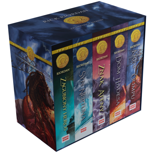 Pięć tomów bestsellerowej serii Olimpijscy Herosi w specjalnie zaprojektowanym pudełku.