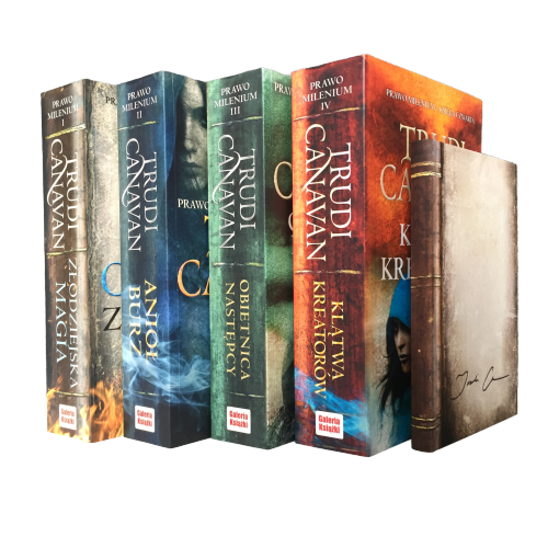 Komplet 4 tomów z serii "PRAWO MILENIUM" autorstwa Trudi Canavan + notes Vella z wydrukowanym na okładce autografem autorki (rozmiar A6, 144 gładkie strony z papieru Munken Pure 100 gm).
